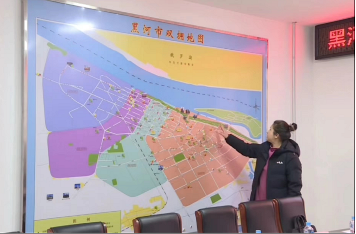 图三:黑河市退役军人事务局双拥科科长王媛媛讲解黑河市双拥地图